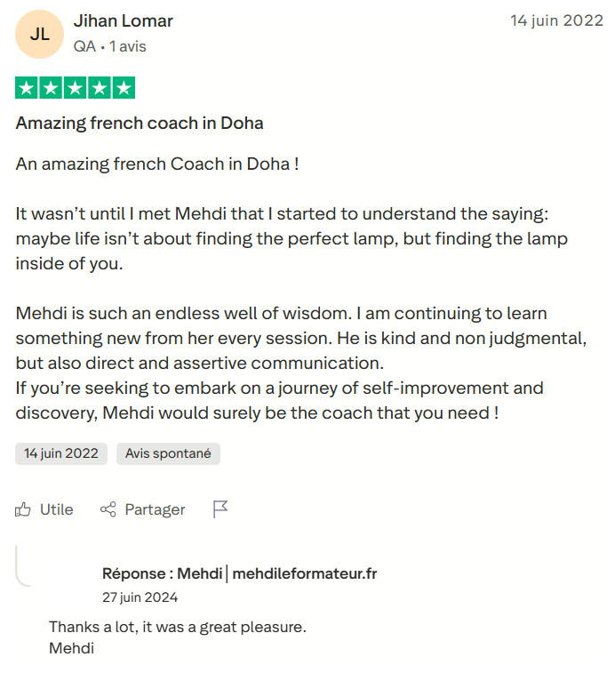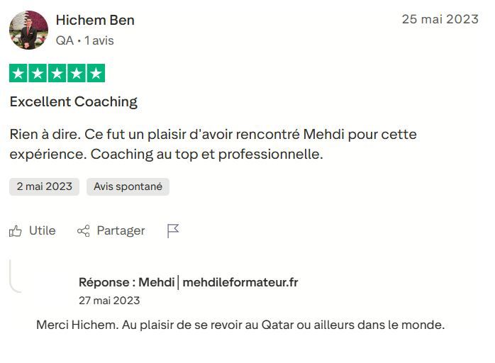 Je suis probablement l’un des rares formateurs francophones à réunir 20 ans d’expérience professionnelle, dont des postes de direction dans plusieurs groupes majeurs (EDF, AXA, ACCOR) et quatre expatriations réussies : Dubaï, Arabie saoudite, Qatar et Bénin.