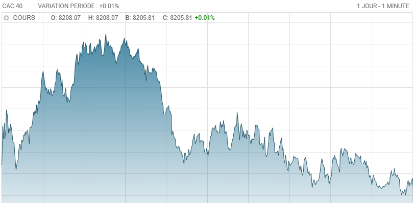 Par exemple ci dessous l'évolution du CAC 40 (les 40 plus grosses entreprises françaises) sur la journée d'aujourd'hui. Comme tu vois si tu as eu le malheur d'acheter en haut en début de matinée. La valeur n'a fait que dégringoler dans l'après midi. 👇🏼