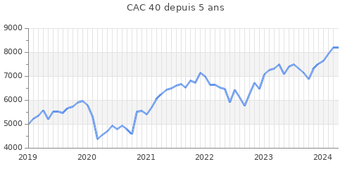 Ci-dessous, la valeur du CAC 40 (les 40 plus grosses entreprises françaises comme LVMH, Airbus, Danone, Sanofi ou Michelin) en un an. 👇🏼