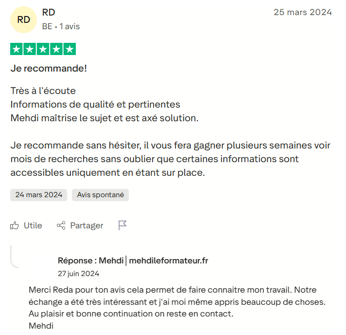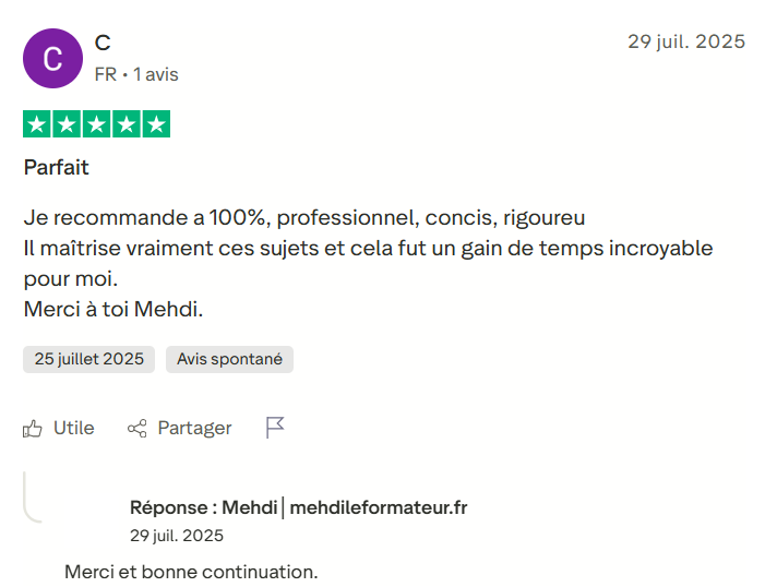 Fondateur de Mehdileformateur.fr depuis 2024, j'aide les cadres et experts à :